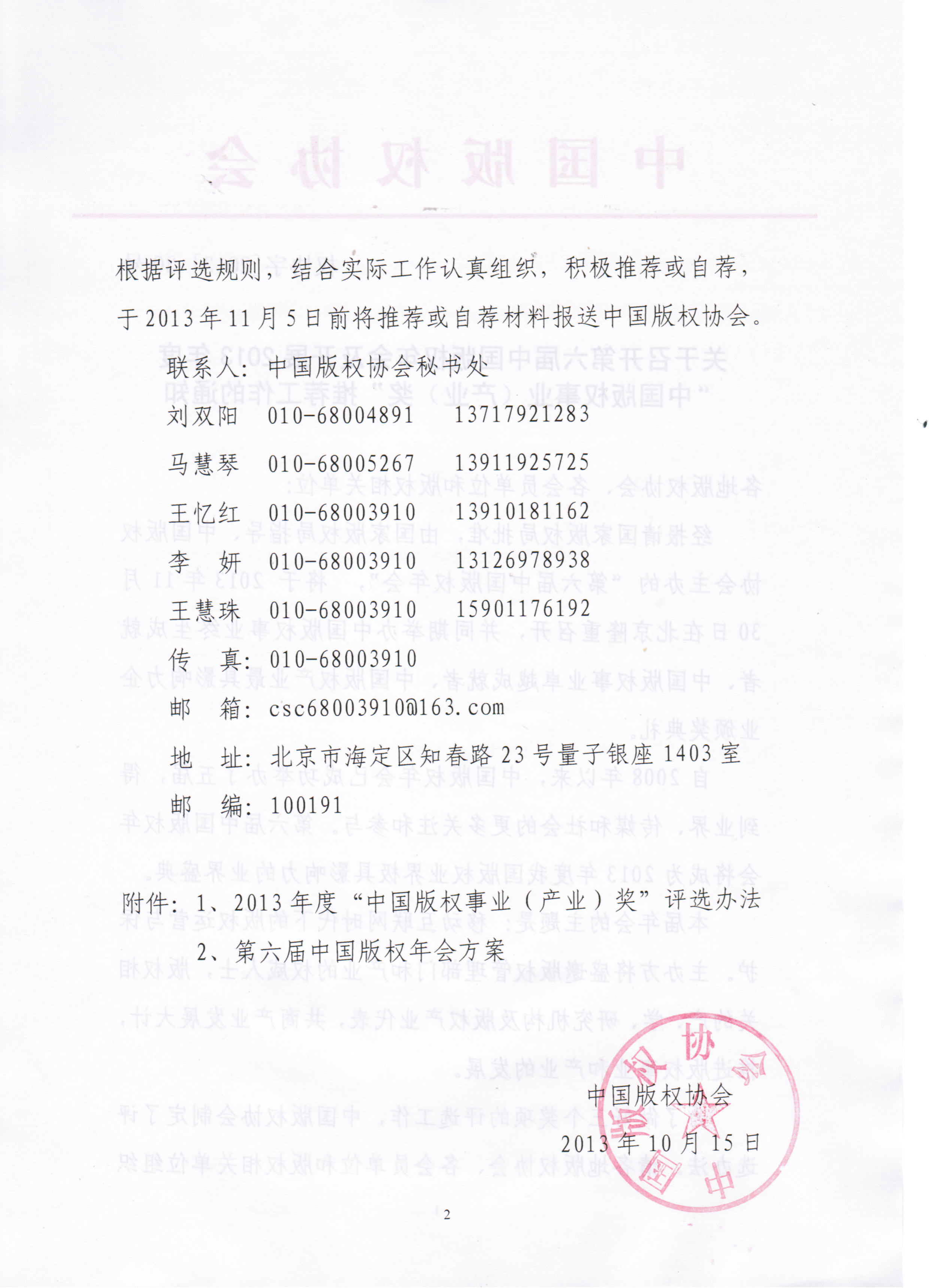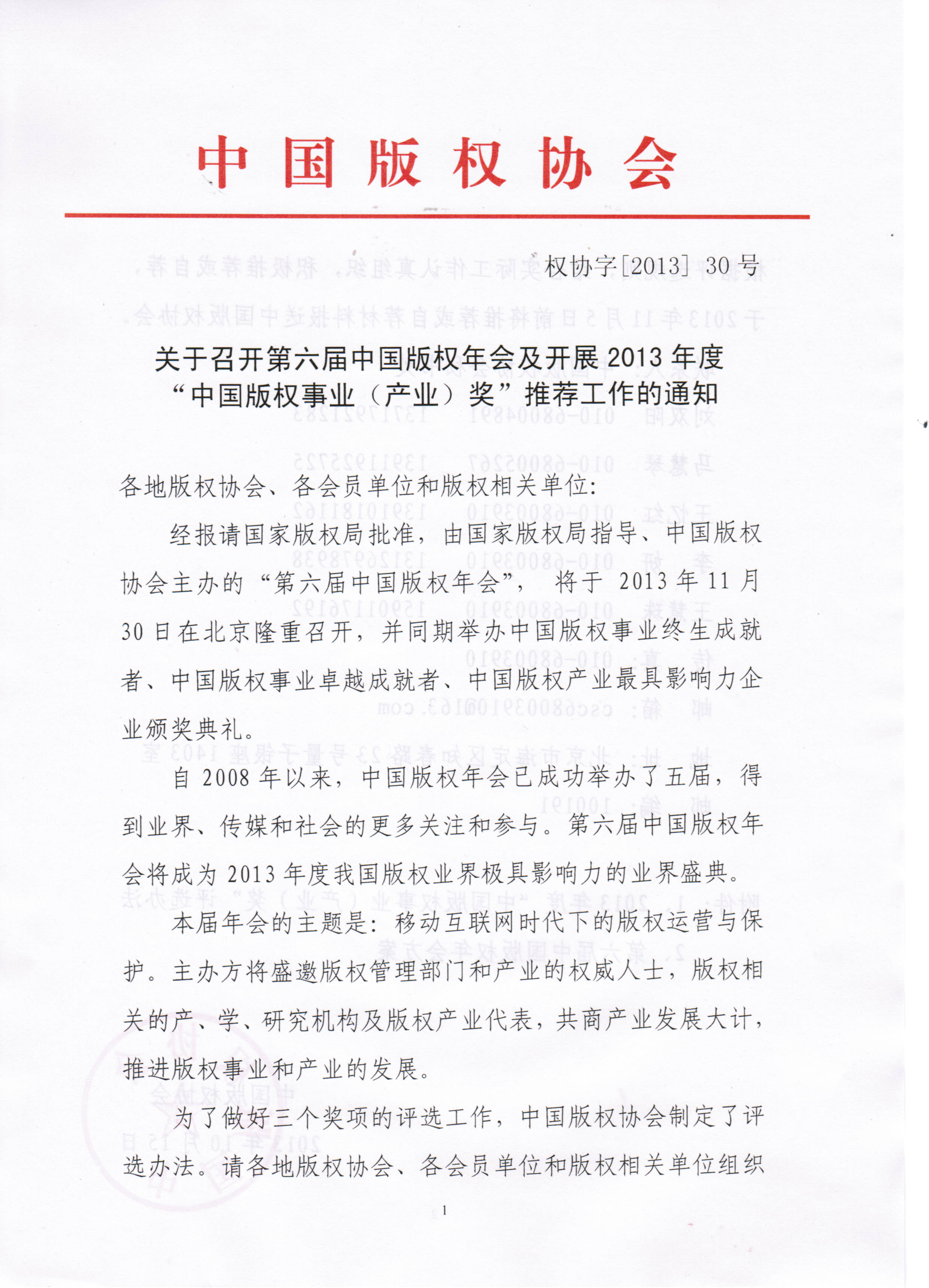 第六屆中國版權年會(huì )年度評選表-卓越